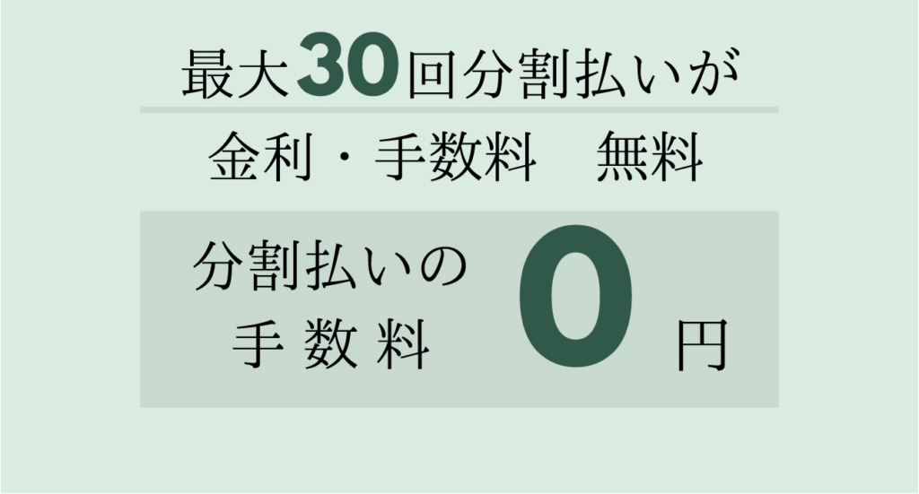 お客様には分割金利・手数料がかからず、最大30回に分けてお支払いが可能です。
